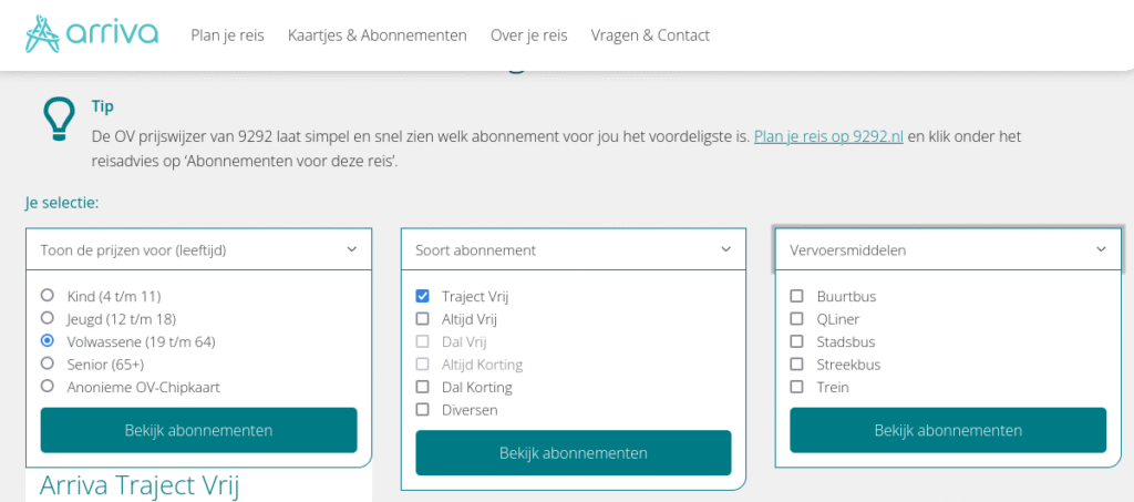 Als ik naar de universiteit wil reizen met het OV, dan ga ik vanuit Heel naar de TUe. Volgens 9292.nl doe ik daar 81 minuten over, dat is bijna anderhalf uur. Het kost mij ook voor een enkeltje 13,26. Dat is voor heen en weer 26,52. Ik ga 3 dagen naar de campus, maar laten we kijken naar abonnementen. Dat was onduidelijk bij Arivva: